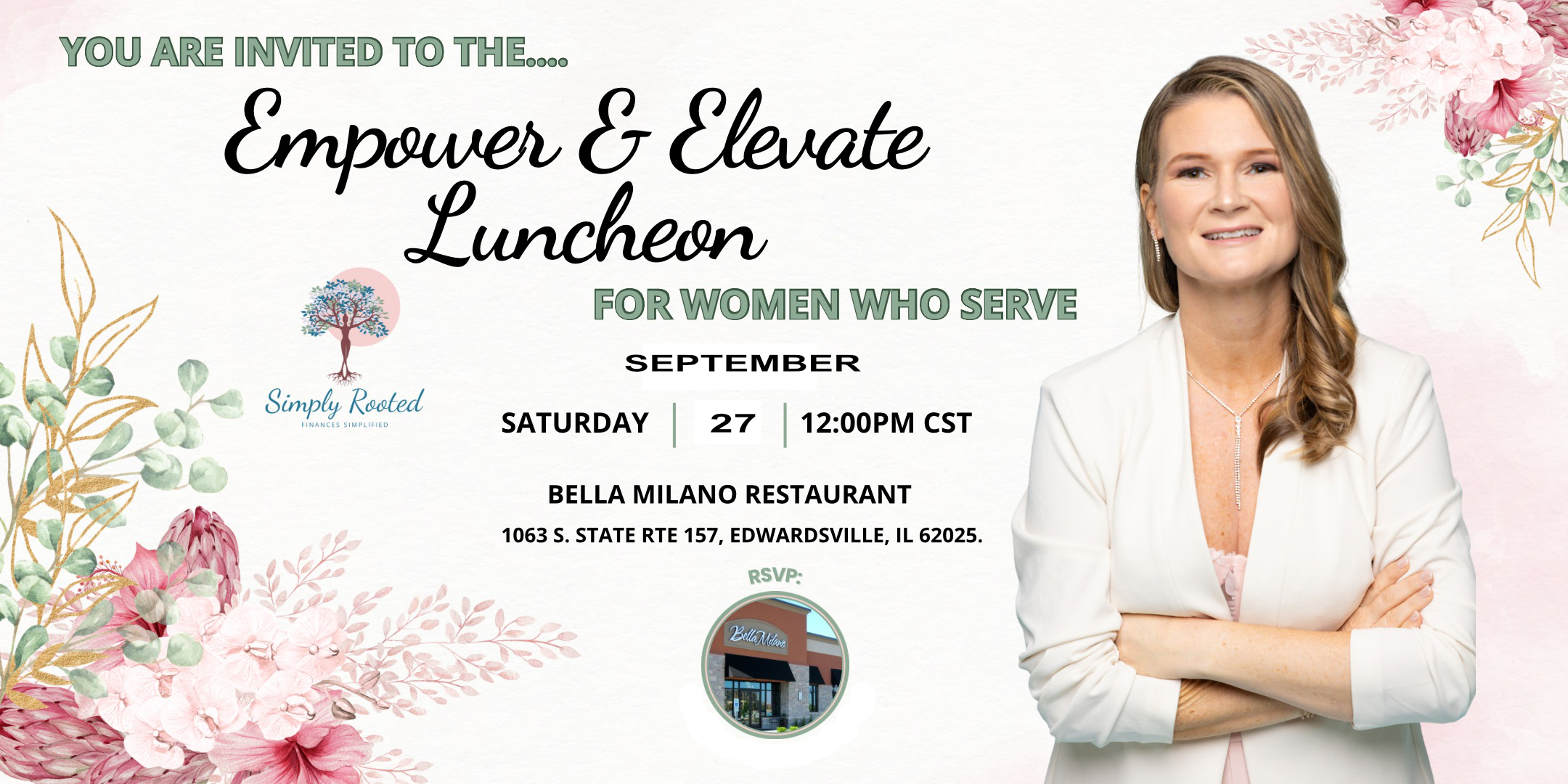 This Empower and Elevate ladies’ luncheon will educate women on becoming financially healthy and wealthy. This luncheon is perfect for the woman who: